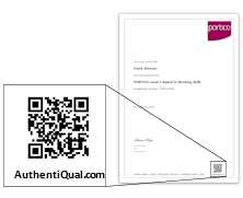 If you have a paper or certificate with an AuthentiQual® QR code then you can verify it simply by scanning the code with a mobile-phone QR app. (Click here for a list of QR apps for Android, iOS (iPhone) and Windows Phone.)